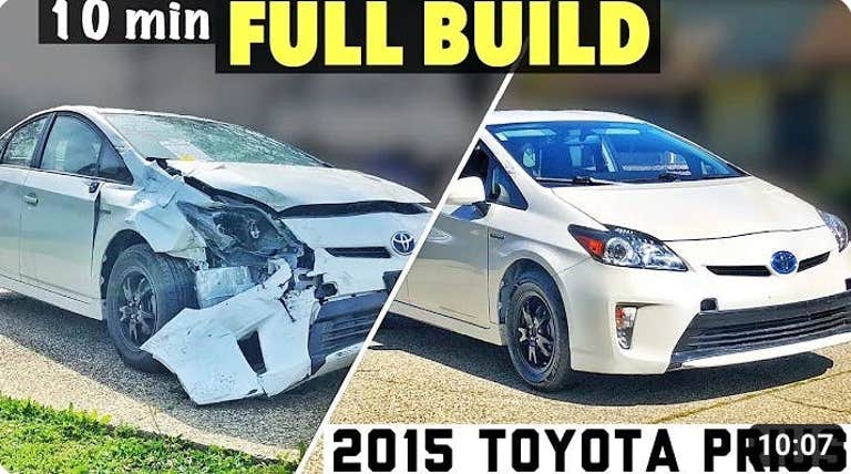You can also enlarge certain pieces of an image for emphasis, or mix and match stills, as with this before and after of a formerly damaged Prius: