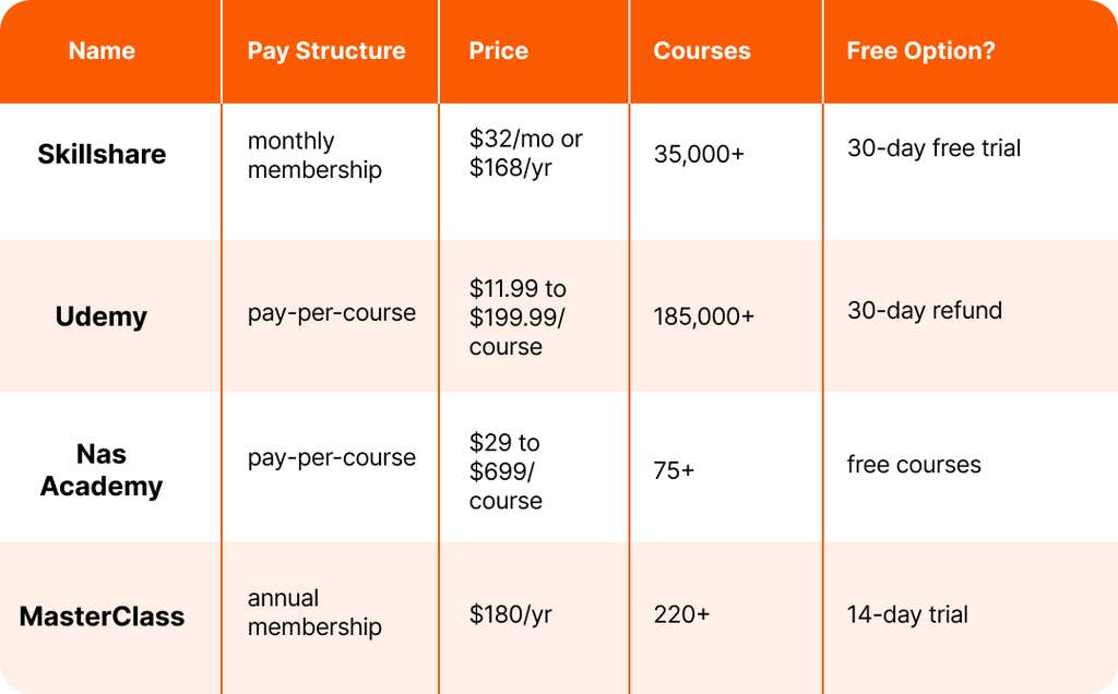 Best for: people who want a wide variety of courses at their fingertips or who want to give paid courses a test run.