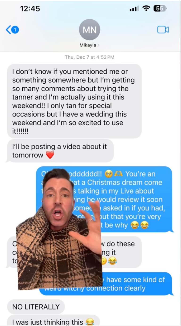 In the fall of 2023, Illusion Bronze’s owner Matthew Stevens started making videos requesting Nogueira make a review video about their revolutionary product. Illusion Bronze sells custom self-tanner based on a customer’s skin tone, hair, and eye color.